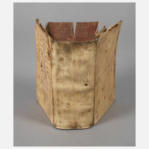 drei Bücher in einem Band: Pentateuchus (Tora), die fünf Bücher Mose, zweisprachig in Latein und Hebräisch, ohne Titelblatt, ca. 1733, 1112 S.; Lexicon Hebraeo–Chaldaicum Biblicum [...], M. Christiano Reineccio, Leipzig 1733, 206 S.; Grammatica Hebraeo-Chaldaica [...], M. Christiano Reineccio, Leipzig 1733, 128 S.; Format Kl. 8°, Schweinsledereinband, Rotschnitt, Seiten gebräunt, Schweinsleder fleckig, verzogen und partiell gelockert, jedoch insgesamt altersgemäß gute Erhaltung.