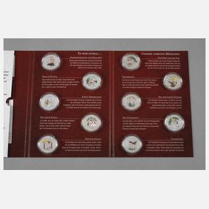 zehn Stück Medaillen, Silber 333, G ca. 14,66 g, mit Motiven deutscher Märchen, darunter Hans im Glück, Der Zaunkönig, König Drosselbart..., mit Relief-Farbveredelung, PP, in Kapsel, in Sammelblister mit Zertifikat.