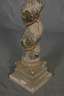wohl Anfang 18. Jh., wohl Lindenholz massiv, geschnitzt und farbig gefasst, hohe Spiralsäulen auf quadratischem Sockel, mit aufgestecktem korinthischen Kapitell, umlaufend verziert mit reliefiertem Weindekor, Altersspuren, kleinere Fehlstellen und Farbverluste, rest.bed., H je 182 cm, Sockel je 34 x 34 cm.