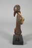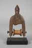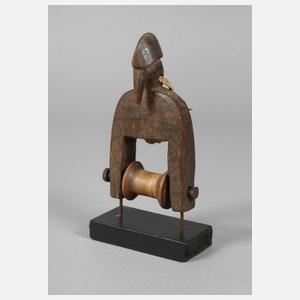 Mali, 2. Hälfte 20. Jh., der Volksgruppe der Senufo zugeordnet, leichtes Tropenholz mit Metallmontierung, bekrönt von Hornraben, auf späteren Sockel montiert, dieser mit altem Sammlungsetikett Dr. W. Nerlich München, H ca. 15 cm.