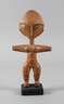 Ghana, 2. Hälfte 20. Jh., der Volksgruppe der Fante zugeordnet, aus leichtem Holz gearbeitete, abstrahierte weibliche Gestalt, auf Sockel montiert, mit Resten alten Anobienbefalls, H 30 cm. Aus der Sammlung von Karl-Heinz Krieg (1934–2012).