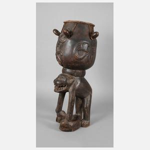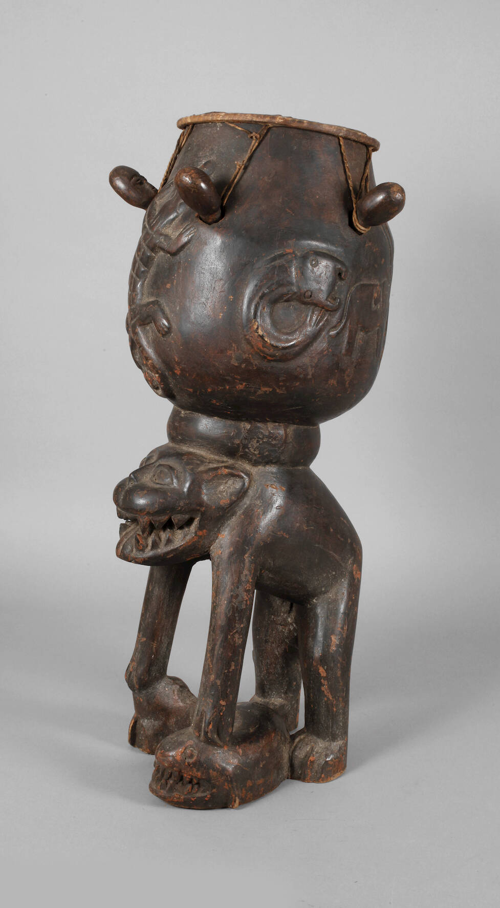 2. Hälfte 20. Jh., dekorative Trommel mit afrikanischen Elementen, H 76 cm.