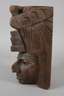 20. Jh., Laubholz beschnitzt und dunkel gefasst, stilisiertes Männerhaupt, bekrönt von Vogelmotiv und gerahmt von Blattwerk, etwas berieben, H 40 cm.