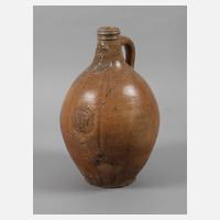 Raeren/Frechen, 17. Jh., braunes Steinzeug salzglasiert, bauchiger Korpus mit gemodeltem Wappen der Stadt Amsterdam, Wandung mit herstellungsbedingter Fehlstelle und Spannungsriss mit kleinen Abplatzern, H 38 cm.