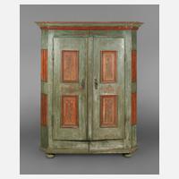 datiert 1846, Nadelholz massiv, originale Farbfassung, eintürig, ohne Schubkasten, Bemalung mit klassizistischen Motiven, stärkere Alters- und Gebrauchsspuren, Scharnier einer Tür defekt, rest.bed., Maße 185 x 118 x 49 cm.