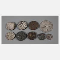 sechzehn Stück, darunter Follis der Kaiser Domitianus Augusti 81–96 v. Chr. und Sesterz des Licinius 321–324 n. Chr., alle s–ss.