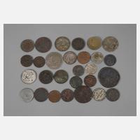 28 Stück, darunter sechs Kreuzer 1745, Max Joseph von Bayern; 1/48 Thaler 1766 Münster; 1/12 Thaler Preußen 1764; sechs Kreuzer Landmünze 1812 Bayern; ein Groschen Braunschweig 1860; 1 1/2 Pfennige Sachsen Weimar Eisenach 1824; ein Pfennig Reuß Greiz 1789; drei Kreuzer Bayern 1832; zwei Kreuzer 1744 Hessen Darmstadt..., alles s–ss.
