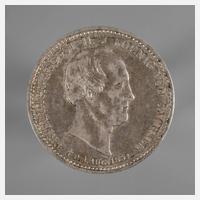 Avers Kopf des Königs nach rechts, 9. Aug. 1854, Revers "ER SAEETE GERECHTIGKEIT UND ERNTETE LIEBE HOS. X. 12.", Silber, 1/3 Taler, ss, G ca. 8,2 g.