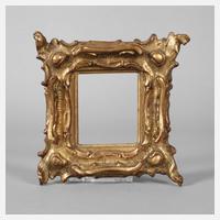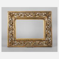 2. Hälfte 19. Jh., Holz geschnitzt, gestuckt und vergoldet, ca. 11 cm breite Leiste, verziert von Durchbruchdekor aus Rollwerk und Akanthusblattmotiven, kleinere Substanzverluste, etwas restaurierungsbedürftig, Falzmaße 36,5 x 26 cm.
