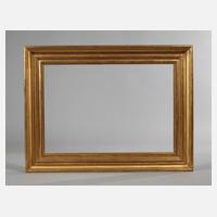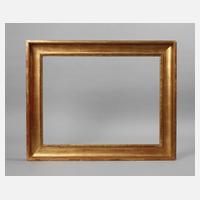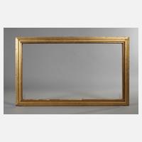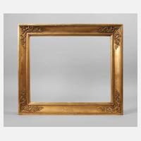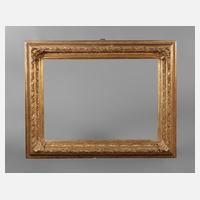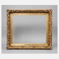 Ende 19. Jh., Rahmen aus ca. 15 cm breiter, mit Eierstab, Rankwerk und Blütengirlanden sowie schmalem Perlstab gestuckter vergoldeter Holzleiste, goldbronziert, partiell poliert, Ecken ausgestellt, Ecken rechtwinklig überplattet, Rahmen mit wenigen nachvergoldeten Fehlstellen, Falzmaße ca. 61 x 85 cm.