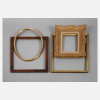 2. Hälfte 19. Jh., Holz geschnitzt, teils gestuckt, goldbronziert bzw. furniert, vier verschieden große Modelle, dabei ein Ovalrahmen, unterschiedliche Maße und Erhaltungen, Falzmaß max. 47,5 x 36,5 cm.