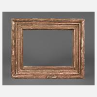 Anfang 19. Jh., stark gekehlte, ca. 7 cm breite, aufsteigend profilierte Goldleiste mit rotem Bolusgrund, verziert mit lesbischem Kymation, Ecken auf Gehrung gesägt und rechtwinklig geplattet, Vergoldung teils stärker berieben, minimale Fehlstelle, Falzmaße ca. 34 x 27 cm.