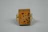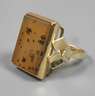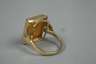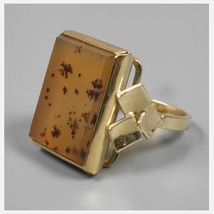 um 1970, Gelbgold gestempelt 585, ca. 20 mm hoher Ringkopf, besetzt mit einem rechteckigen Dentritenquarz, RW 17 mm, G ca. 7,1 g.