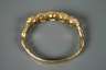 2. Hälfte 20. Jh., Gelbgold gestempelt 750 und Marke DK, schauseitig besetzt mit fünf oval facettierten Citrinen von ca. 13 x 10 mm und acht grünen Kleinstbrillanten in Pavéfassung, flankiert wird der Steinbesatz von je einer nackten weiblichen bzw. männlichen Figur mit nach oben gerichteten Armen, Scharnierverschluss mit Sicherheitsbügel, leichte Tragespuren, D innen max. ca. 55 mm, G ca. 74,8 g.