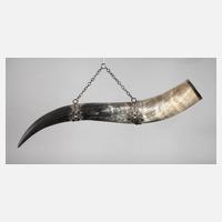 Anfang 20. Jh., dreiteilige getriebene Silbermontierung, gemarkt 925, Rinderhorn mit zarter Gliederkette, gute Erhaltung mit leichten Altersspuren, L 63 cm.