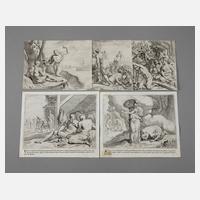 fünf Blatt mit mythologischen Themen, wohl aus der Folge Odyssee, zwei Blatt unter der Darstellung mit lateinischem Text, in der Darstellung nummeriert 35, 36, 37, 39 und 40, Kupferstiche, um 1630–35, wohl etwas spätere Abzüge, jeweils in der Darstellung monogrammiert "TvT", rückseitig Spuren alter Montierung, minimale Erhaltungsmängel, Darstellungsmaße max. ca. 19,5 x 25 cm. Künstlerinfo: auch Tulden, niederländischer Maler, Zeichner und Kupferstecher (1606 Herzogenbusch bis 1669 ebenda), ab 1621 Schüler von Abraham Blyenburch, nachfolgend Schüler von Peter Paul Rubens, ab 1626 Freimeister der Lukasgilde, deren Vorsteher er 1638–39 war, 1631/33 in Paris nachweisbar, 1635 heiratet er das Patenkind von Peter Paul Rubens, die Tochter des Malers Hendrik van Balden, ab 1635 übernimmt er im Auftrag von Antwerpen die Herausgabe des 43 Tafeln umfassenden Prachtbands zur Erinnerung an die von Peter Paul Rubens entworfene Festdekoration zum Einzug des Statthalters Kardinal Ferdinand, 1636 wird er Bürger von Antwerpen, von 1643 bis zu seinem Tod wieder in seiner Geburtsstadt ansässig, Quellen: Thieme-Becker und Internet.