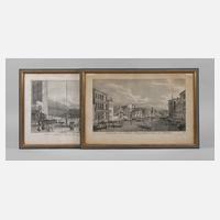Blick über den belebten Markusplatz in Venedig, am linken Bildrand ist der Markusturm zu erkennen, nach einem Gemälde von Caneletto, unter der Darstellung bezeichnet "Areae majoris S. Marci Prospectus ad Templum S. Jeminiani.", Radierung, 1742, unter der Darstellung rechts in der Platte nummeriert "XI", etwas fleckig, hinter Glas gerahmt, Darstellungsmaße ohne Schrift ca. 25 x 42,5, Falzmaße ca. 35 x 50,5 cm, Beigabe Venedigansicht (neuerer Abzug). Künstlerinfo: ital. Maler und Architekt (1688 Venedig bis 1782 ebenda), Schüler von Giovanni Antonio Pellegrini, ging 1708 mit Marco Rici nach England, um Castle Howard auszumalen, ab 1711 Mitglied der Malerzunft Fraglia die pittori, Zusammenarbeit mit dem Kaufmann und späteren Konsul Joseph Smith, 1757 zusammen mit Giovanni Domenico Tiepolo Ausmalung eines Raumes der Villa Valmarana ai Nani in Vincenza, 1772–78 Professor für Architektur an der Kunstakademie in Venedig, auch Verfasser zahlreicher Schriften, Quelle: Thieme-Becker und Wikipedia.