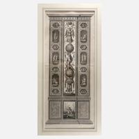 großformatige Darstellung eines üppig verzierten und bemalten Pilasters in den Loggien des Vatikans, Kupferstich auf zwei Bögen Papier, unter der Darstellung im Druck bezeichnet und datiert rechts "Joannes Volpato sculp. Romae 1776" und links "Ludovicus Teseo Taurinensis delin.", minimal fleckig, unter Passepartout und hinter Glas gerahmt, Darstellungsmaße ca. 101 x 47 cm. Künstlerinfo: auch Johannes Volpato, italienischer Radierer (1733 Bassano bis 1803 Rom), Lehre als Steinmetz, 1760-62 Schüler an der Calcografia Remondini in Bassano, folgte anschließend Bartolozzi nach Venedig, ab 1772 in Rom ansässig, betrieb hier auch eine Schule für Kupferstich, 1786 gründete er in Via Pudenziana eine Porzellanfabrik, Papst Pius verlieh ihm das Privileg der Nachbildung von Altertümern, Quelle: Thieme-Becker und Internet.