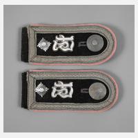 für einen Feldwebel der Panzerlehrabteilung, schwarzes Tuch mit silberner Tresse und rosa Paspelierung, sehr seltene frühe PL-Auflagen, guter Zustand.