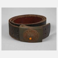 Eisen, feldgraue Farbe zu 70 % erhalten, geschwärzter Lederriemen, OLC auf der Gegenschließe, Reichsbetriebsnummer 0/6633/0041 auf der Lederzunge, Z 2, L ca. 105 cm.
