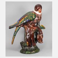 neuzeitlich, wohl Italien, Majolika mit verlaufenden Farbglasuren, naturalistische Ausformung, auf einem Stamm sitzend, ein Blatt fachmännisch restauriert, H 105 cm.