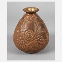 Entwurf Gaston Ventrillon-Le-Jeune (1897–1982), Modellnummer 242.J, Werk Luneville 1924–1936, Feinsteinzeug mit reliefiertem geometrischen Dekor und stilisierten Floralismen, dunkelbraun bemalt und farblos glasiert, guter Zustand, H 38,5 cm.