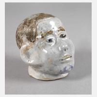wohl Wien, um 1920, am Boden handschriftliche unleserliche Bezeichnungen, Monogramm GB und Nummer 21, helle Irdenware frei geformt und geritzt, Pinseldekor mit Zinnglasur, guter unbeschädigter Zustand, H 10 cm.