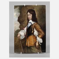 1. Hälfte 20. Jh., signiert H. Fritzsche (Porzellanmaler in Dresden), ungemarkt, rückseitig handschriftlich bezeichnet und auf Klebeetikett Herstellerangabe Freital Potschappel, Hüftbild des jungen Prinzen von Oranien (1647–1650 Statthalter der Vereinigten Niederlande) nach einem Gemälde von Anton van Dyck (1599–1641), abnehmbare Wandaufhängung, links oben ein kleiner Kratzer, sonst guter Zustand, Maße 30 x 20,5 cm.