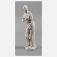 Porzellanmanufaktur Sévres, geprägte Dreiecksmarke mit Datierung 1904, Ritzbuchstabe S., naturalistische Ausformung in Biskuitporzellan, auf runder Plinthe mit Baumstammstütze stehende nackte Schönheit mit schmalem Tuch um die Taille, ihre Hände vor Brust und Scham haltend, Darstellung der römischen Göttin der Liebe nach der ehemals im Besitz der Familie Medici befindlichen antiken Skulptur (heute Uffizien Florenz), ein Daumen fehlt, sonst guter Zustand, H 30 cm.