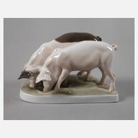 Entwurf Albert Caasmann 1914, grüne Stempelmarke um 1920, undeutliche Modellnummer K404, naturalistische Ausformung und Unterglasurbemalung, auf oblongem Rasensockel zwei wühlende Hausschweine, ein Ohr fachmännisch restauriert, sonst guter Zustand, H 11 cm.