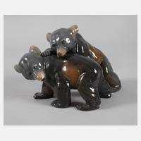 Entwurf Gustav Oppel 1936, monogrammiert, grüne Stempelmarke 1944, Zusatz Germany Kunstabteilung Selb, Modellnummer 1593, naturalistische Ausformung und Unterglasurbemalung, Darstellung zweier spielender Jungbären, sehr guter Zustand, H 15 cm.