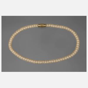 um 2000, Verschluss geprüft Gelbgold 585/1000, hieran mit Perlen gefüllte Schlauchkette, L ca. 51 cm, G ca. 51,3 g.