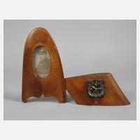 zwei Teile eines Propellers aus Holz, bestückt mit einer Borduhr von Junghans (funktionstüchtig), beschriftet mit "Bo-UK-I-Fl. 23685" Seriennummer 19805 und dem Portrait eines Piloten, signiert "Gotha 1916/17", guter Zustand, Maße ca. 12 x 18 cm und 16 x 26 cm.