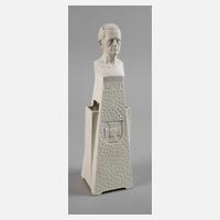 um 1920, patriotische Pyramidenvase aus Steinzeug mit Büste Generalfeldmarschalls Moltke, auf der Vorderseite das Eiserne Kreuz mit Familienwappen in der Mitte, auf den Kreuzarmen oben Krone und W, links 1864, rechts 1866 und unten 1870, links, rechts und hinten drei Aussparungen für Blumen, guter Zustand, H 34 cm.