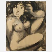 auf dem Boden sitzender Damenakt mit aufgestütztem Kopf und zum Betrachter gerichtetem Blick, Aquarellfarbe in Schwarz und Deckweiß, rechts oben signiert und datiert "Lobo 1945", Papier gleichmäßig leicht gegilbt, hinter Glas gerahmt, Falzmaße ca. 46 x 38 cm. Künstlerinfo: auch Baltasar Lobo, spanischer Bildhauer und Zeichner (1910 Cercinos de Campos bis 1993 Paris), um 1922 im Alter von 12 Jahren ging er bei dem Bildhauer Ramon Nuñez in die Lehre, ab 1927 durch Stipendium Studium in Madrid, engagierte sich im spanischen Bürgerkrieg für die Republik, ging 1939 nach Paris und hier Freundschaft mit Pablo Picasso, arbeitete im Atelier von Henri Laurens als Assistent, 1945 Ausstellung in der Galerie Vendome, weltweit in zahlreichen Museen vertreten, 2009 Eröffnung des Centro de Arte Contemporáneo Baltasar Lobo im Zamora. Quelle: Wikipedia.