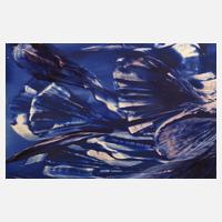 sich ineinander verwischende Blautöne mit pastosem Farbauftrag, Acryl auf leichtem Karton, rechts unten datiert und monogrammiert "(19)93 UL", auf Rahmenrückseite Widmung, in Passepartout freigestellt und hinter Glas gerahmt, Maße ca. 18 x 23 cm. Künstlerinfo: dt. Malerin, Fotografin und Objektkünstlerin (geboren 1943 in Bad Wörishofen), 1971–72 Studium an der Akademie Düsseldorf bei Joseph Beuys, 1972–76 Studium der Malerei und Bildhauerei an der Städelschule Frankfurt am Main bei Raimer Jochims und Michael Croissant, 1976–84 Studium der Kunstgeschichte, Philosophie, Kunstpädagogik und Archäologie an der Uni Frankfurt am Main, unternahm zahlreiche Studienreisen durch Europa, Afrika, Australien, in den Fernen Osten, Süd- und Nordamerika, seit 1984 freischaffend in Frankfurt am Main, 1984–87 Dozententätigkeit, ab 1988 Lehraufträge für Kunst, Kunsttheorie und Kunstgeschichte, erhielt diverse Stipendien, 1995–2010 regelmäßige Arbeitsaufenthalte in New York, 2011–20 regelmäßige Arbeitsaufenthalte in Los Angeles, Quelle: Homepage der Künstlerin und Internet.