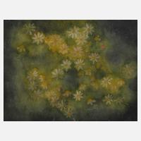 Blick auf weiß blühende Wiesenblumen, Mischtechnik auf Karton, um 1990, in Darstellung roter Signaturstempel, etwas kratzspurig, hinter Glas gerahmt, Plattenmaße ca. 31,5 x 40,5 cm.