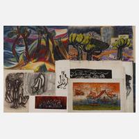 kraftvolle, intensiv farbige Komposition, Fettkreiden, unter der Darstellung rechts signiert und links datiert "Dec. 18.(19)58", rückseitig Nachlassstempel, minimale Altersspuren, Blattmaße ca. 27,6 x 21,4 cm. Künstlerinfo: eigentl. Johannes von Wicht, dt.-amerik. Maler und Graphiker (1888 Malente bis 1970 Brooklyn), ab 1907 Beschäftigung mit der Zeichnung, Besuch der privaten Kunstschule des hessischen Großherzogs in Darmstadt, schwere Verwundung im 1. Weltkrieg, 1923 Auswanderung in USA, Quelle: Vollmer und Internet.