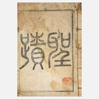 wohl Mitte 19. Jh., xylographischer Nachdruck eines ursprünglich 1797 erschienenen Buches mit der Darstellung der fünf konfuzianischen ethischen Verpflichtungen Kinderliebe, Loyalität, Keuschheit, Brüderlichkeit und Freundschaft, Erhaltungsmängel, beigegeben mit Briefwechsel des Vorbesitzers von 1982.
