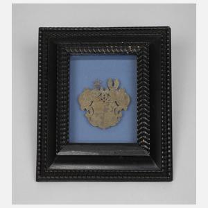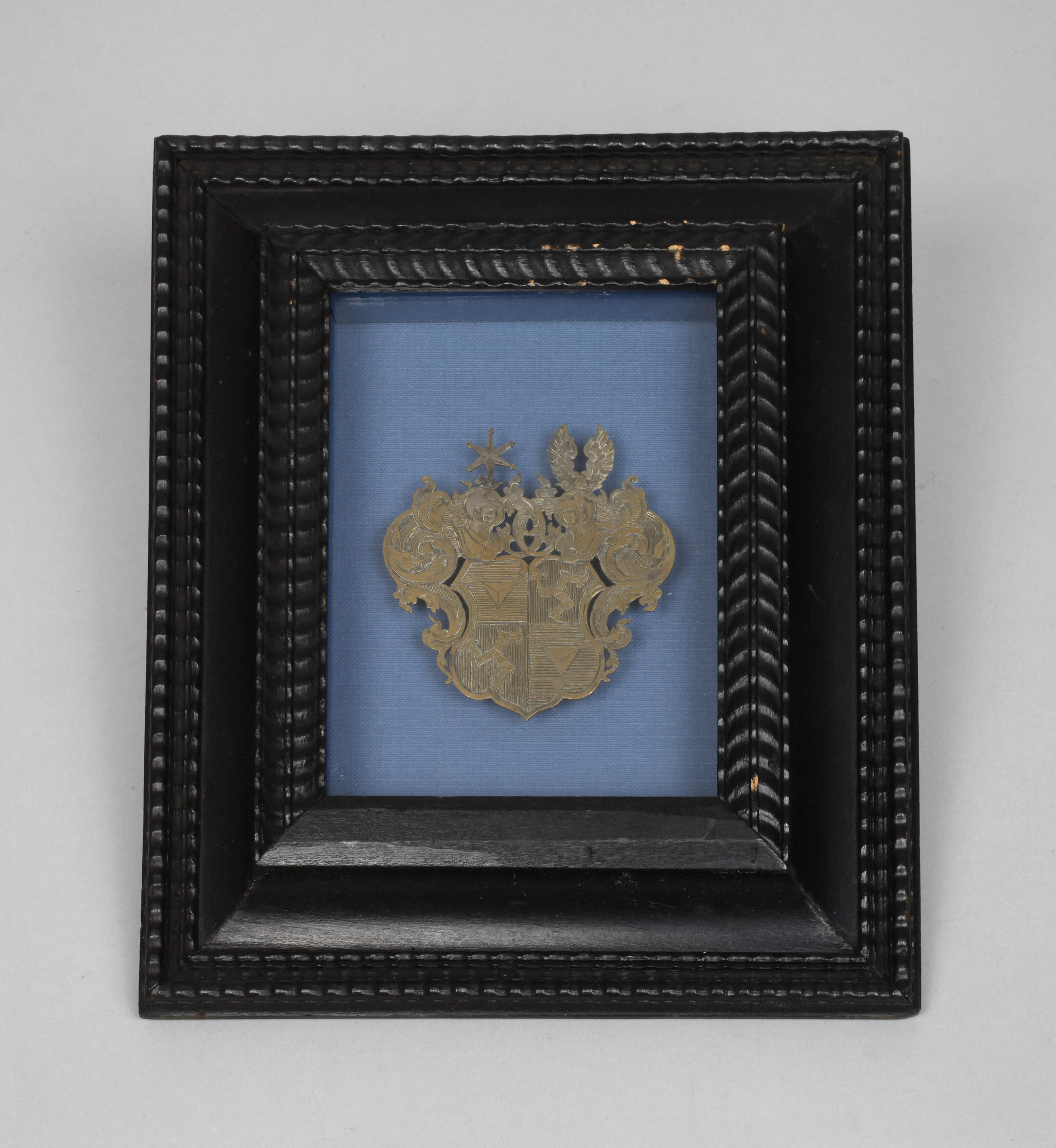 18.-19. Jh., Wappendarstellung der "Von Geuter"auf Messingtafel, fein ausgearbeitet und graviert, wohl Juweliersarbeit, guter Zustand, hinter Glas im Rahmen, Maße Wappen ca. 8 x 8 cm, Maße Rahmen 21 x 24 cm. Die Geuder von Heroldsberg waren eine der ältesten Patrizierfamilien der Reichsstadt Nürnberg, erstmals urkundlich erwähnt im Jahr 1253. Namensgebender Familiensitz war das zwischen 1387 und 1391 erworbene Reichslehen Heroldsberg. Die Geuder waren ab 1349, mit kurzen Unterbrechungen, bis zum Ende der reichsstädtischen Zeit im Jahre 1806 im „Inneren Rat“ vertreten und gehörten nach dem „Tanzstatut“ zu den zwanzig alten ratsfähigen Geschlechtern. Quelle: Internet.