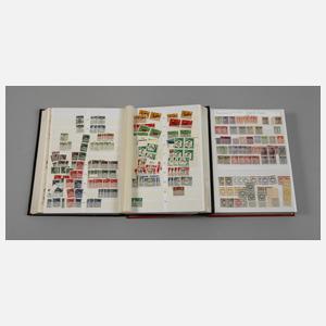 ca. 1000 Marken der vier Besatzungszonen; ca. 2000 Marken BRD und Berlin ab 1949 bis 1970er Jahre; ca. 400 Marken Österreich, vorwiegend K & K bis Deutschösterreich, mit Feldpostmarken, Italien und Rumänien sowie ca. 300 Marken Schweiz, vorwiegend 1. Hälfte 20. Jh., schön sortiert in zwei Steckalben, ungebraucht und gestempelt.