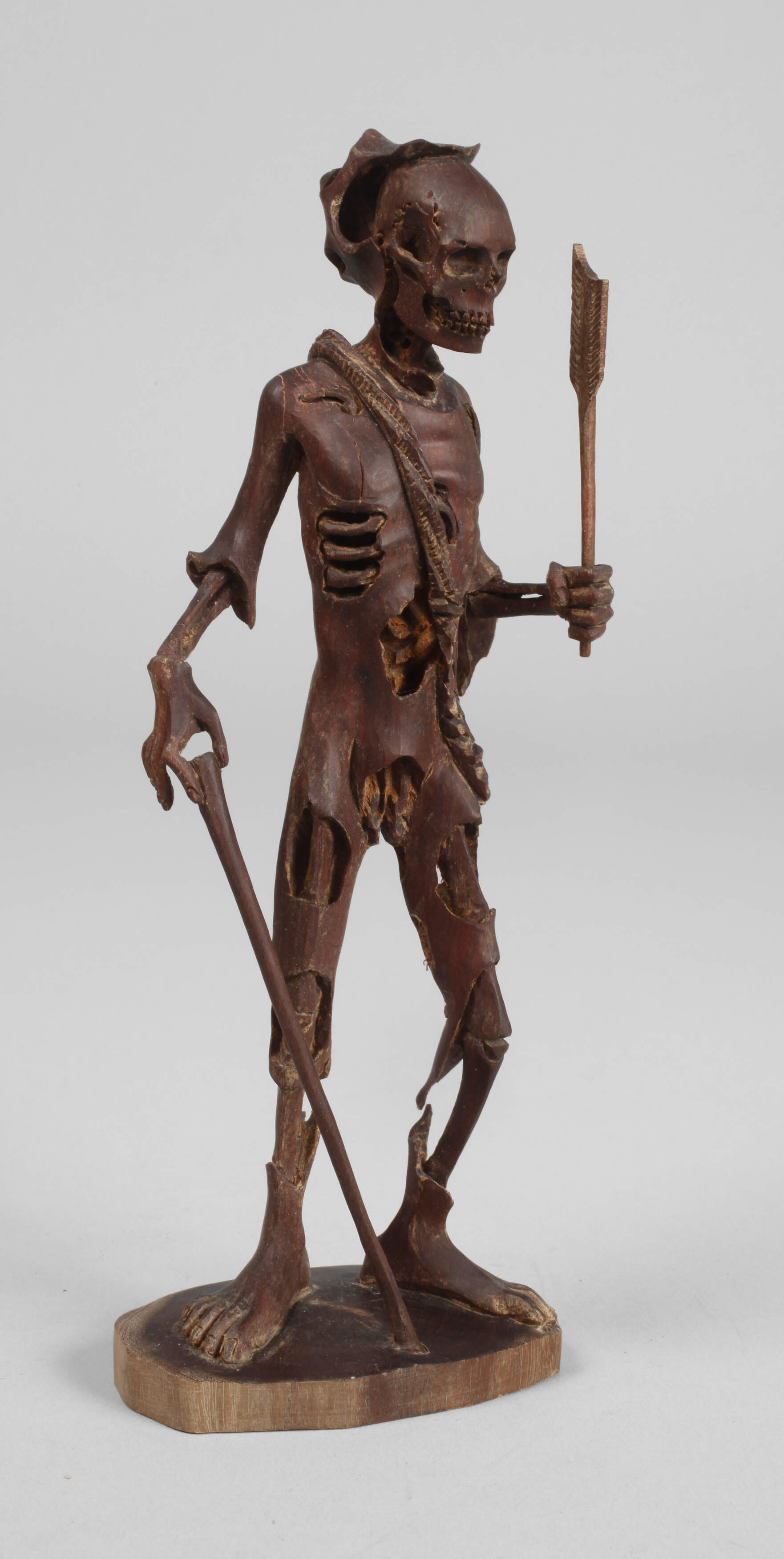 20. Jh., Buchsbaum geschnitzt, stehendes Tödtlein auf flacher Plinthe, minimale Altersspuren, H 16 cm.