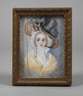 Ende 19. Jh., unsigniert, Gouache auf Platte, mit partieller Weißhöhung, Schulterstück einer jungen Rokokoschönheit mit federbesetztem Hut, vor monochromem Fond, Malgrund mit Rissbildung, hinter Glas in schmaler Leiste gefasst, Maße 8 x 5,5 cm.