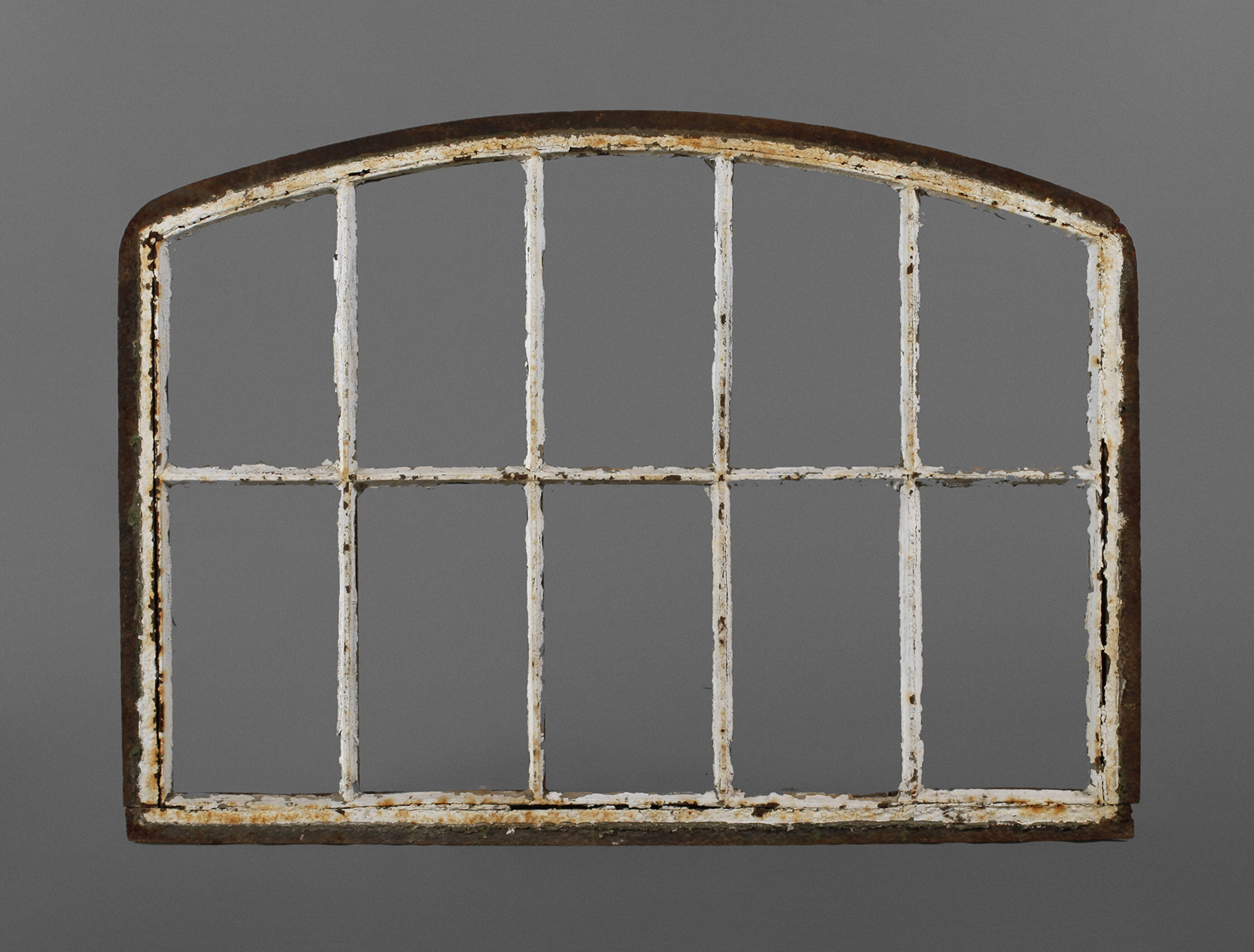 Gusseisen, 2. Hälfte 19. Jh., Oberlicht mit Stichbogen, ausgeglast, Korrosionsspuren, Reste alter Farbfassung, Maße 75 x 102 cm.