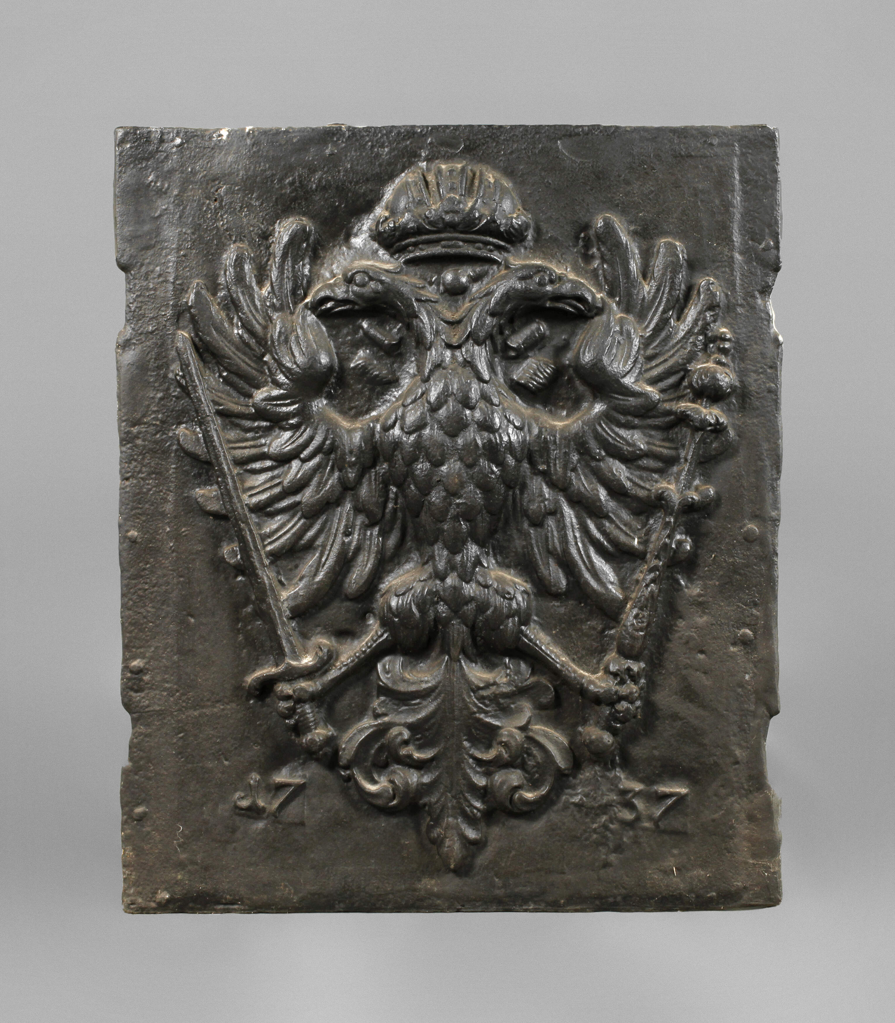 datiert 1737, mit stark reliefiertem Doppeladler, Nachguss 2. Hälfte 20. Jh., Maße 68 x 58 cm.