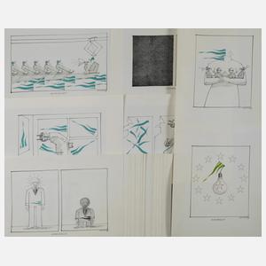 23 Karikaturen zum Thema Strom und Energie, Tusche, Faserschreiber und Aquarell, je rechts unten signiert "Kainrath" und 22 Blatt datiert "(19)95", wenige Blätter minimal fleckig, Blattmaße ca. 30 x 40 cm. Künstlerinfo: österr. Graphiker und Karikaturist (1942 Innsbruck bis 2018 ebenda), Besuch der Kunstgewerbeschule Innsbruck, anschl. tätig als Gebrauchsgraphiker, Ende der 1970er Jahre machte er das Zeichnen von Karikaturen zum Hauptberuf und wurde durch Ausstellungen in Deutschland, Österreich und den USA bekannt, Quelle: Wikipedia.