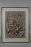 drei Frauen mit Blumen in den Händen, beim gemeinsamen Tanz, farbenfrohe Kreidezeichnung und Goldfarbe auf grauem Papier, rechts unten signiert und datiert "Maiofis (19)94", unter Passepartout und hinter Glas gerahmt, Passepartoutausschnitt ca. 62 x 47 cm. Künstlerinfo: auch Michel Maiofiss, russ. Maler, Zeichner und Illustrator (geboren 1939 in St. Petersburg), 1989 in die USA ausgewandert, lebt und arbeitet in Los Angeles, Vater des Künstlers Gregori Maiofis, Quelle: Internet.
