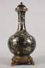 Ende 19. Jh., ungemarkt, Bronze mehrteilig gefertigt, keulenförmiger Korpus aufwendig in Cloisonnétechnik verziert, polychromes opakes Zellenschmelzemaille in Form von Blütenranken, Insektendarstellungen und Glückssymbolik, der flache Sockel mit vier kurzen Füßen in Form von Elefantenhäuptern, gute Erhaltung mit leichten Altersspuren, H 45 cm.