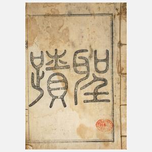 wohl Mitte 19. Jh., xylographischer Nachdruck eines ursprünglich 1797 erschienenen Buches mit der Darstellung der fünf konfuzianischen ethischen Verpflichtungen Kinderliebe, Loyalität, Keuschheit, Brüderlichkeit und Freundschaft, Erhaltungsmängel, beigegeben mit Briefwechsel des Vorbesitzers von 1982.