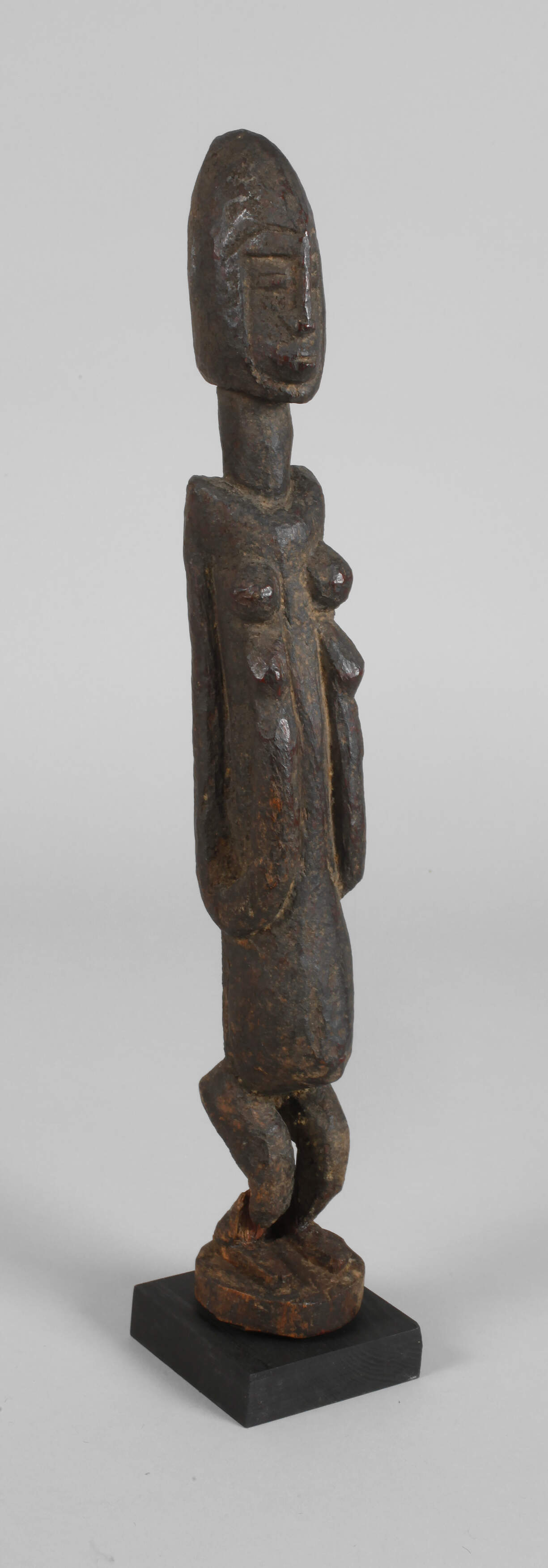 Westafrika, 1. Hälfte 20. Jh., der Volksgruppe der Dogon zugeordnet, Holz beschnitzt, mit feiner Opferpatina, Fehlstelle am rechten Bein, sowie alte Klebestelle am Linken, H 44 cm.